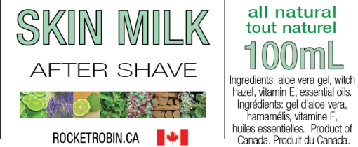 Skin Milk. Â Alcohol-free, simple ingredients and no bad chemicals. Â Milk for your skin. Â A natural moisturizer and balm all in one formula. Â Smells good and feels good on the skin. Â You will feel it working to soothe your skin immediately after application. Â And soon you will forget you ever had any issues with your skin after shaving! Â Set it up and forget it! Â Tested for over one year and approved by Rocket Robin himself. Â I’m sure Keanu would approve, too!